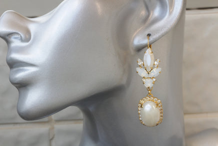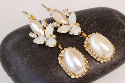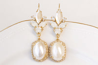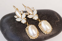PEARL DROP EARRINGS, Rebeka White Opal Chandeliers, Ivory Pearl Dangle Earrings, Wedding Pearl Earrings, Statement Long Bridal Earrings