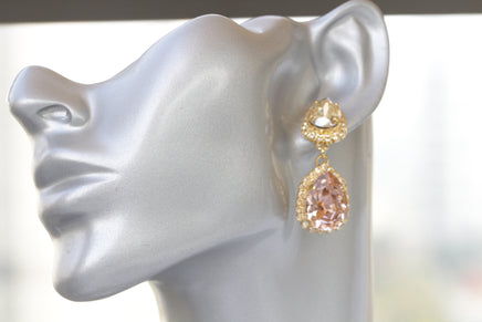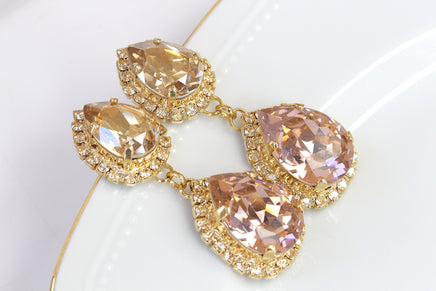 BLUSH CHANDELIER EARRINGS, Rebeka Woman Light Pink, Bridesmaid Morganite Long Earrings, Bride Jewelry Gift, Wedding Champagne Earrings