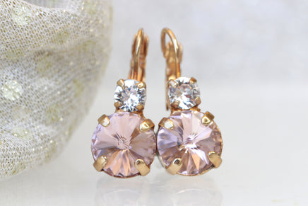 BLUSH MORGANITE EARRINGS, Rose Gold Wedding Earring, Bridal Drop Earrings, Light Pink Bridesmaid Earrings Gift, Rebeka Crystal Earrings