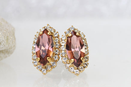 BLUSH PINK BRIDAL Earrings, Antique Pink Wedding Earrings, Rebeka Vintage Earrings, Stud earrings, bridesmaid Minimalist Oval Earrings