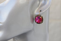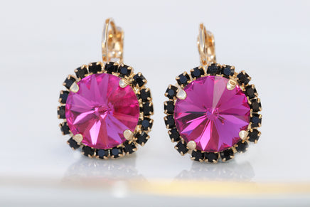 FUCHSIA BLACK EARRINGS, Hot Pink Dangle Earrings, Rebeka Dark Pink Earrings, Sister Earrings Gift, Wedding Fuchsia, Bridesmaid Earrings