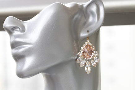 MORGANITE DROP EARRINGS, Blush Crystal Earrings, Bridal Pink Earring,Cluster Big Earrings, Bridal Rebeka Earrings,Vintage Wedding Droplet