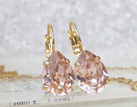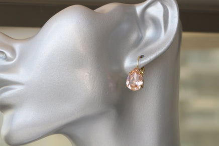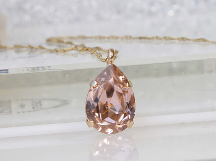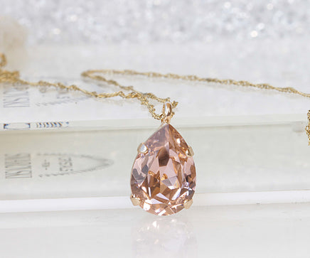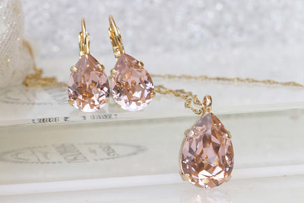 MORGANITE Jewelry Set, Teardrop Pendant, Wedding Jewelry, Bridal Simple Earrings And Necklace Set, Light Peach Necklace, Blush Pink Necklace