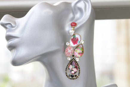 These beautiful red black earrings by Rebekajewelry perfect for wearing them to a Spanish wedding dress , they extra statement and long, the stones are acrylic and Rebeka crystals