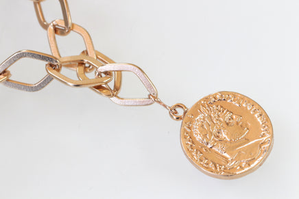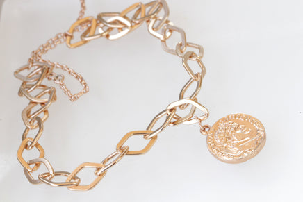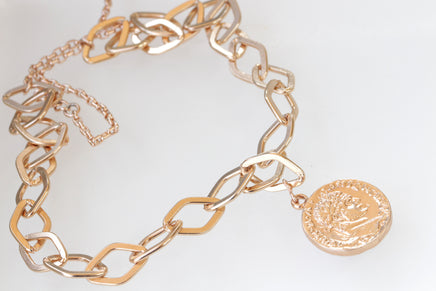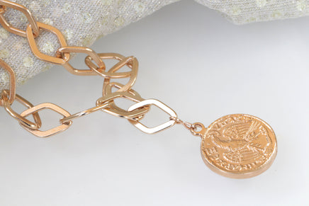 COIN NECKLACE, Rose Gold Necklace, Long Chunky Necklace, Rose Gold Coin Necklace, Gold Disc Necklace, Woman Gift, 2 sides Pendant Necklace