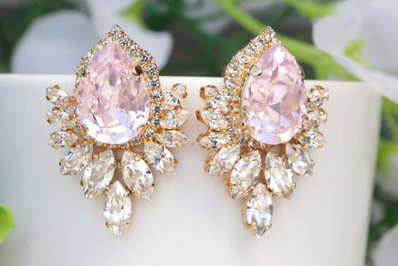 PINK Earrings, Maid of Honor, Bride Gifts, Bridal Pink Earrings, Baby Pink Wedding Jewelry, Rose Quartz Earrings, Cluster Rebeka Earrings