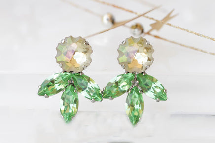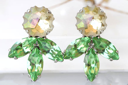 PERIDOT EARRING, Light Green Bridal Earrings, Leaf Earrings, Gift For Her, Apple Green Earrings ,Rebeka Earrings, Cluster Post Earring