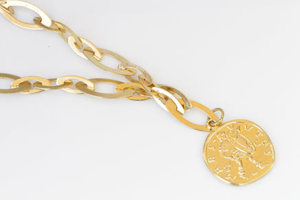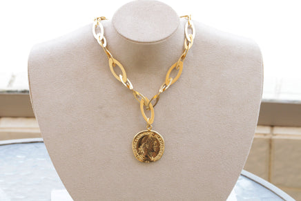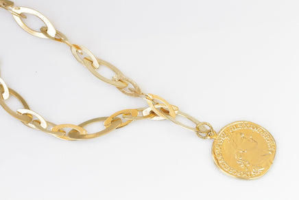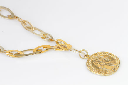 COIN NECKLACE, Greek Coin Necklace, Long Chunky Necklace, Gold Coin Necklace, Ancient Coin Style, Greek Coin Pendant,Medallion Necklace Gift