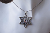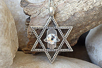 Silver Star of David Charm Necklace. Clear Rebeka Hamsa and Star of David Necklace. Magen David Charm Necklace. Jewish Jewelry Gift Ideas