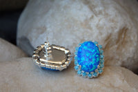 These stunning oval white opal and turquoise Rebeka earrings have a great statement look that can't be missed.