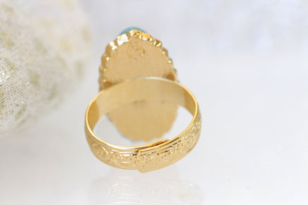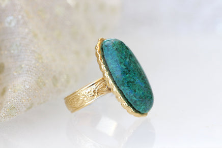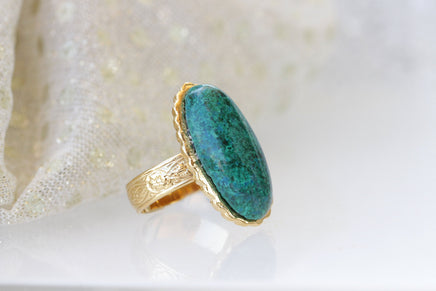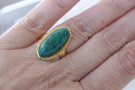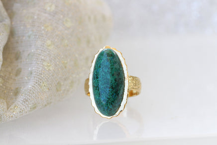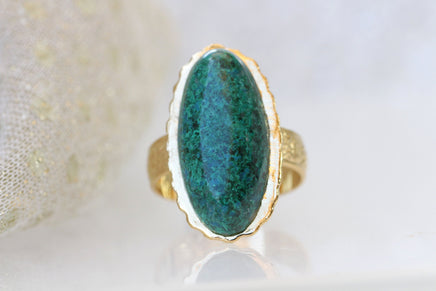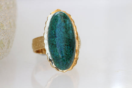 Eilat Stone Ring, King Solomon Stone Ring, Green gemstone ring, Copper Mineral Ring, Adjustable Ring, Gold ring, Cocktail ring, Oval ring