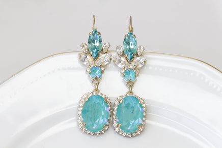 TURQUOISE EARRINGS, Bridal Blue Long Earrings, Bridal Gold Blue Earrings, Rebeka Turquoise Jewelry, Bride Custom Order, Leverback Earring