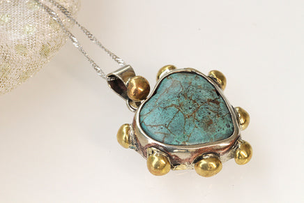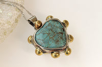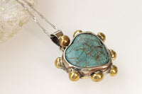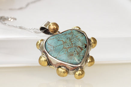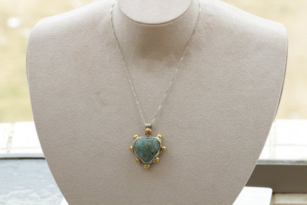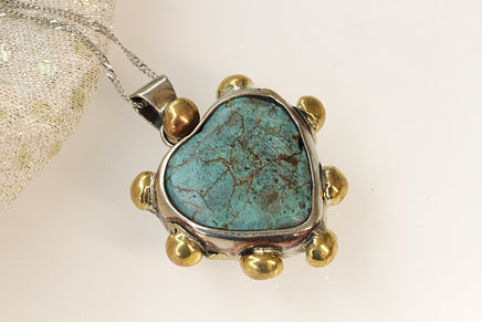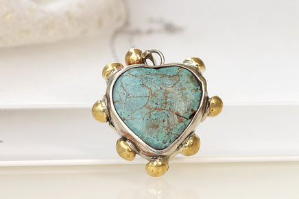 TURQUOISE HEART NECKLACE, Turquoise Boho Pendant, Hippie Jewelry, Sterling Silver 925 and Brass Necklace,Raw Genuine Turquoise Necklace Gift