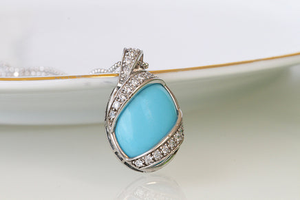 TURQUOISE SILVER NECKLACE, Turquoise Pendant, Crystals Necklace, Necklace For Women, Sterling Silver 925 Statement Necklace, Unique Gift