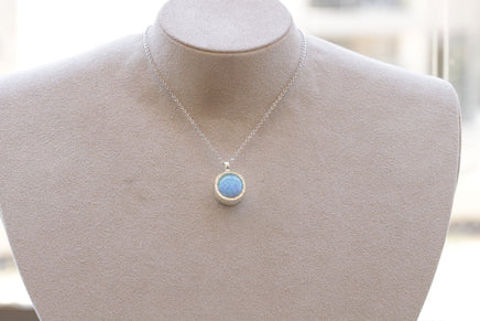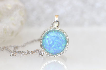 BLUE Opal necklace, Gemstone opal pendant necklace, Fire opal jewelry, Silver opal necklace, October Birthstone, Simple Necklace For Women