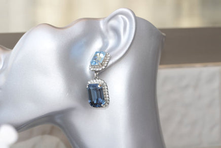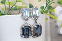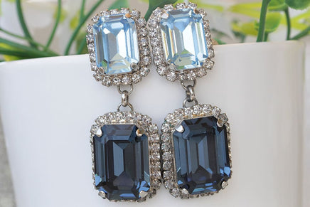 BRIDAL BLUE EARRINGS, Wedding Aquamarine Blue Earrings, Dark Blue Dangle Earrings, Something Blue For Formal Jewelry, Aqua Blue Chandeliers