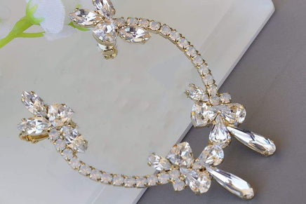 OPAL WEDDING EARRINGS, Crystal Leaf Ear Climber, Rose Gold Earring Crawler, Rebeka Crystal Earring, Climbing Ear Cuff, Bridal Earrings