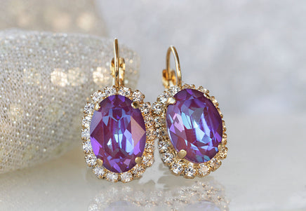 PURPLE CRYSTAL EARRINGS, Rhinestone Earrings, Rebeka Bridal Earrings, Ab Purple amethyst Earrings, Sister Jewelry Gift, Gentle Earrings,
