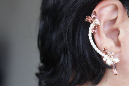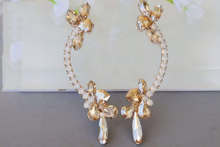 ROCK CLIMBING EARRINGS, Blush Earrings, Ear Crawlers, Bridal Earrings, Rebeka Crystal,Ear Climber, White Opal Earrings, Rose Gold Earring