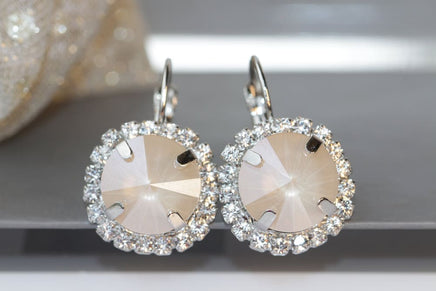 SILVER CREAM EARRINGS, Round Earrings, Rebeka Earrings, Ivory Earrings, Bridesmaid Earring Gift,Bridal Drop Earrings,Cream White Earrings