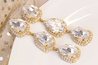 Long BRIDAL Earrings, Teardrops Chandeliers, Gold Crystal Earrings, Crystals Of Rebeka Earrings, Triple White Wedding Earrings, Xmas Gift