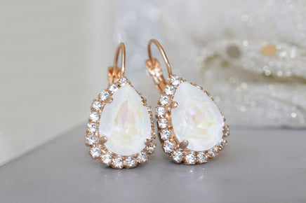 OPAL EARRINGS, White Earrings, Ab Crystal Wedding, Bridal Drop Earrings, Bridesmaid Rebeka Earrings, Christmas Gift,Opal Crystal Earrings