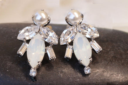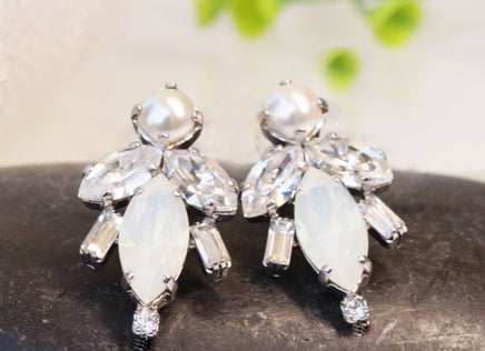 PEARL WEDDING EARRINGS, Rebeka Bridal Earrings, White Opal Bridesmaid Earrings, Bridesmaid Stud Earrings, Custom Personality Jewelry