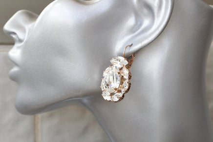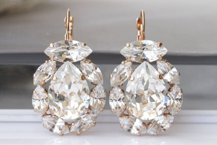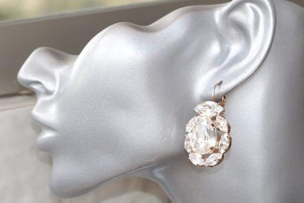 Wedding Earrings For brides, Rebeka Earrings, Bridal Drop Earrings, Shiny Earrings, Bridal Rose Gold Earrings, White Crystal Earrings