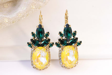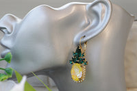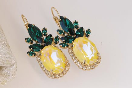Pineapple Earrings, Rebeka Drop Earrings, Pineapple Statement, Fruit Earrings,  Earring Gifts for Sister, Yellow Green Emerald Earrings