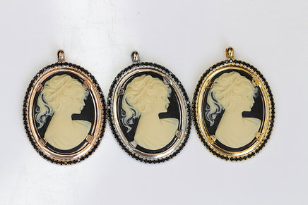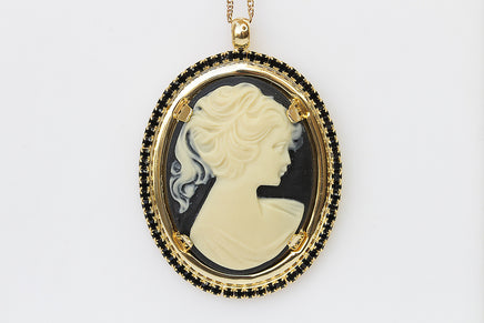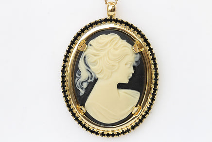 BLACK CAMEO NECKLACE, Statement Black Gold Cameo Necklace, Rebeka Necklace,Unique Vintage Necklace, Lacey Cameo Necklace,Feminine Jewelry