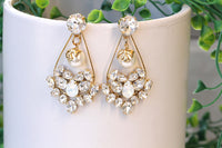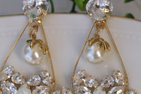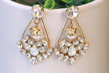 BRIDAL LONG Earring, Opal Rebeka Earrings, Beaded Pearl Earrings, Cluster Long Earrings,Wedding Earrings,Statement Earring,Dangle Earring