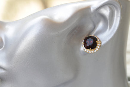 BURGUNDY EARRINGS, Wine Red Earrings, Rebeka bridesmaid Earrings, Bordeaux Bridal Earrings, Garnet Crystal Jewelry, Maroon Stud Earrings,