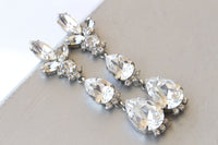 CRYSTAL LONG EARRINGS, Bridal Silver Earrings,Statement Teardrop Crystal Earrings,Evening Wedding Earrings, Earrings Gift,Chandelier Earring