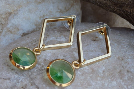 This geometric pair of earrings with green Rebeka are a flattering accessory for both casual and evening wear.
