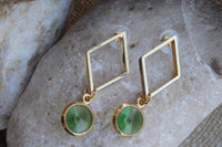 Geometric Green Earrings. Gold Rhombus Earrings. Green Rebeka Earrings. Rhombus Stud Earrings. Green Dangle Earrings. Geometric jewelry