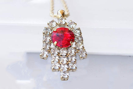 HAMSA HAND NECKLACE, Fatima Necklace, Omg Necklace, Rebeka Crystals, Ruby Crystals Hamsa Pendant, Statement Red Hamsa, Evil Eye Necklace
