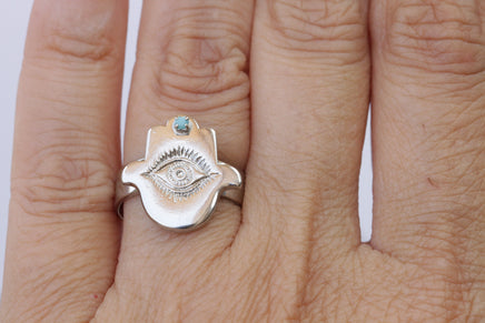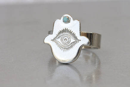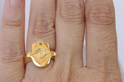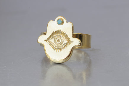 HAMSA RING, Evil Eye Ring, Turquoise Eye Ring, Hand Of Fatima Jewelry Set, Gold Hamsa Ring, Protection Ring, Gift For Her, Charms Symbolic