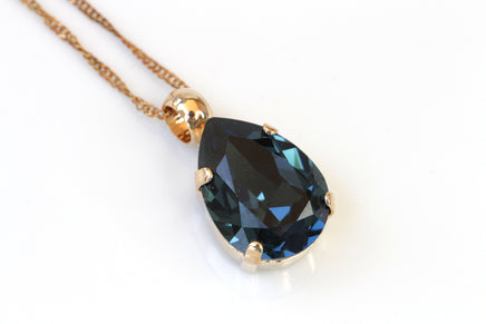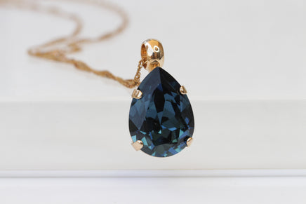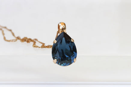 NAVY BLUE NECKLACE, Teardrop Pendant, Wedding Dark Blue Jewelry, Bridal Simple Necklace, London Blue Topaz Necklace, Rose Gold Blue Necklace