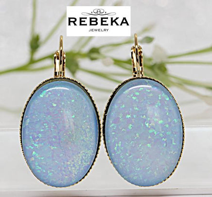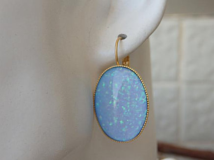 Opal jewelry. Blue opal earrings. Bridal drop big earrings. Large oval wedding earrings. October birthstone jewelry. Opal birthday gift