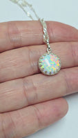 Opal necklace. Bridal opal necklace. Womens jewelry. White silver necklace for brides. Birthday gift idea. Minimalist circle necklace. Wife