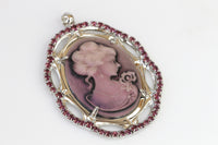 PURPLE Cameo Necklace, Big Cameo Pendant, Toggle Cameo Necklace, Lady Necklace, Victorian Style, Amethyst Cameo Necklace, Vintage,Statement