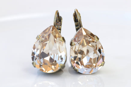 SILK EARRINGS, Bridesmaid Light Ivory Nude Earrings, Dainty Bridal Jewelry For Brides, Leverback Champagne Rebeka Wedding Earrings, Gift