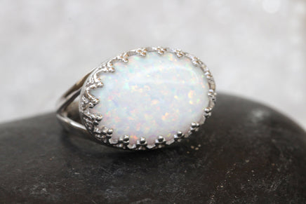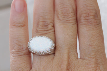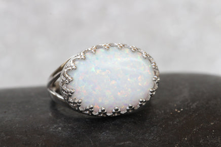 WHITE Opal Ring, Opal Silver Sterling 925 Ring, Fire Opal Ring, Rings For Woman, Christmas Gift For Wife, October Gemstone Birthstone Ring